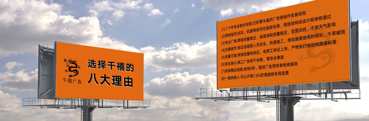 世紀之交,石家莊千禧廣告裝飾有限公司(下方簡稱千禧廣告公司或公司)自2000年10月10日創(chuàng)立伊始,即在燕趙大地落地生根,成長為國內(nèi)擁有23年施工經(jīng)驗的實體型戶外廣告設施制作工廠。公司集新品研發(fā)、結構設計、生產(chǎn)制作、施工建造于一體,現(xiàn)代化生產(chǎn)廠房為大中型高炮廣告牌(又稱高炮廣告塔、單立柱廣告牌、單立柱廣告塔、擎天柱廣告塔、擎天柱廣告牌)、龍門架、三面翻鋼結構、LED廣告屏鋼結構等的精益生產(chǎn)、高效流水化作業(yè),產(chǎn)品交工質(zhì)量過硬,公司擁有現(xiàn)代化生產(chǎn)車間,配備了不可或缺的硬件裝備。